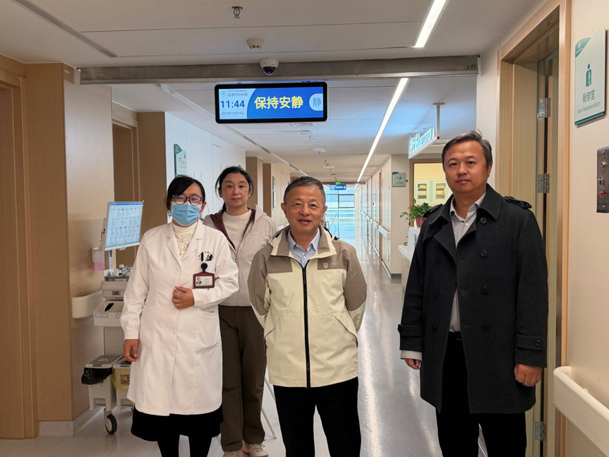王椿教授、赵初娴主任在山东大学齐鲁医院德州医院张睿主任(右一)与韩琰医生(左一)的陪同下参观新建院区